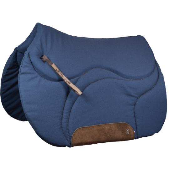 Composition : 2 épaisseurs de feutre de coton moelleux, côté cheval recouvrant uniquement la zone sous la selle — ce qui réduit le volume hors selle et améliore l’ajustement.